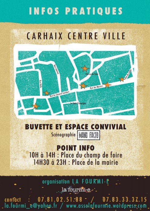 À travers cet événement, quatre axes de travail nous intéresse plus particulièrement d’aborder : la question de la présence du street Art dans les villes de campagne, la question de l’urbanisme et dynamisme des centres des petites villes, l’écologie et la place des femmes dans le mouvement du street Art. Pour cela, nous avons invité des artistes à investir les rues, les façades des maisons, les vitrines des commerces et les places de la petite ville de Carhaix, dans le centre Finistère mais aussi des réalisatrice et un graffeur qui parleront, chacun à leur manière de ces sujets qui nous tiennent à cœur.