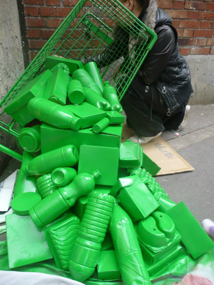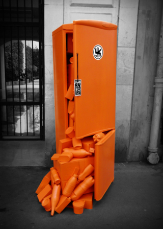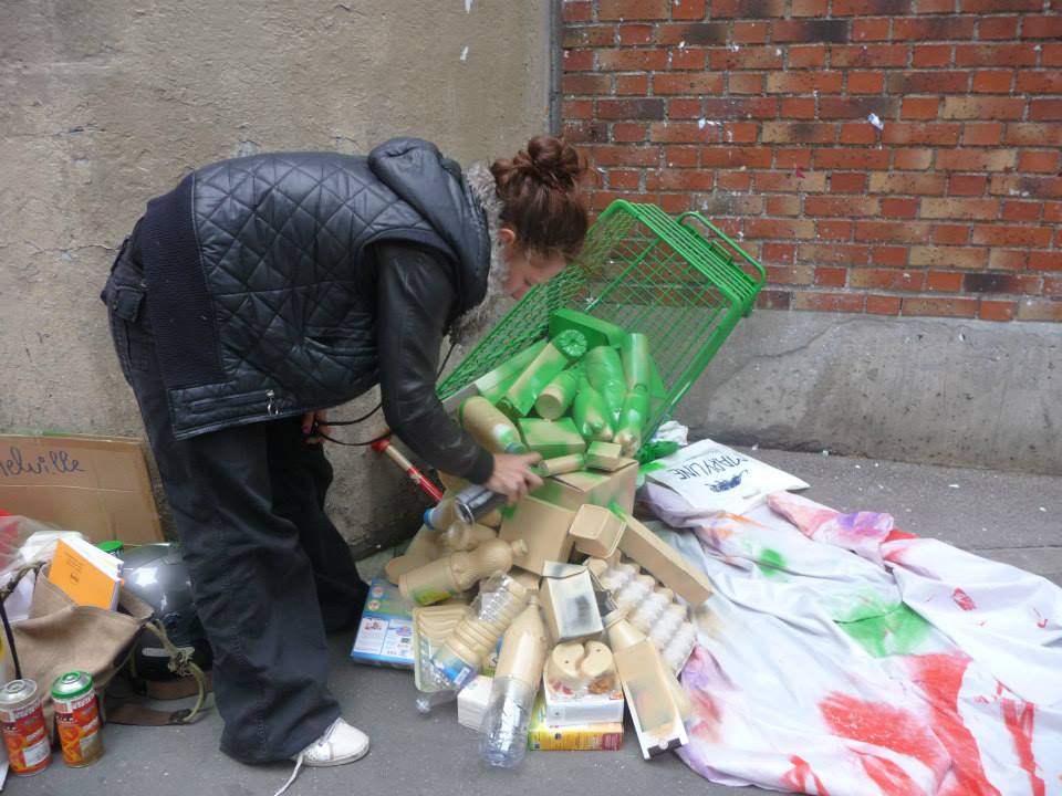 Du 15 septembre au 15 octobre 2011, partir à la recherche de caddies et réfrigérateurs abandonnés dans les rues. Tourner régulièrement dans la région Île de France pour traquer un maximum des objets convoités pour la période instaurée. Avoir le matos sur soi pour pouvoir intervenir à tout moment. Pistolet colle, emballages vides, bombes de peinture, logos et étiquettes permettent de créer la composition extérieure. Trouvé sur le trottoir, l'objet est utilisé directement sur son lieu de découverte. Commencer à le remplir d'emballages en prenant soin de les coller les uns aux autres pour pouvoir créer une accumulation. Au fur et à mesure du séchage, emplir l'objet jusqu'à son débordement exagéré.