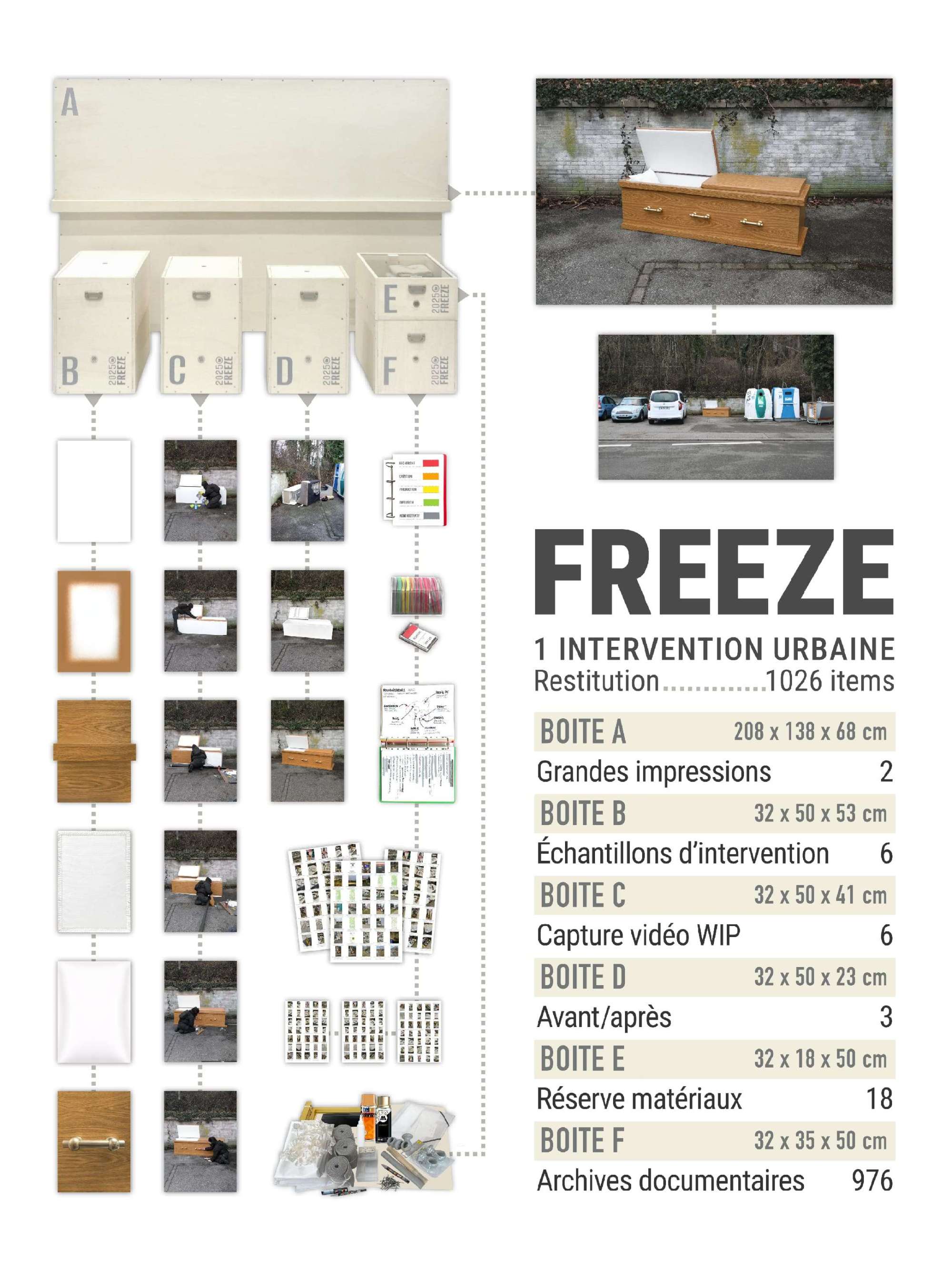 Derrière ce titre anglais, dont la première traduction serait « congeler » ou « se figer », se cache l’artiste Lor-K, qui nous propose de nous immobiliser un instant. Comme dans le freeze, mouvement du breakdance, geler tout mouvement est la condition pour comprendre le geste. Ici, il s’agit de regarder en face ce que nous nous cachons à nous-mêmes : nos déchets, et notre propre obsolescence.