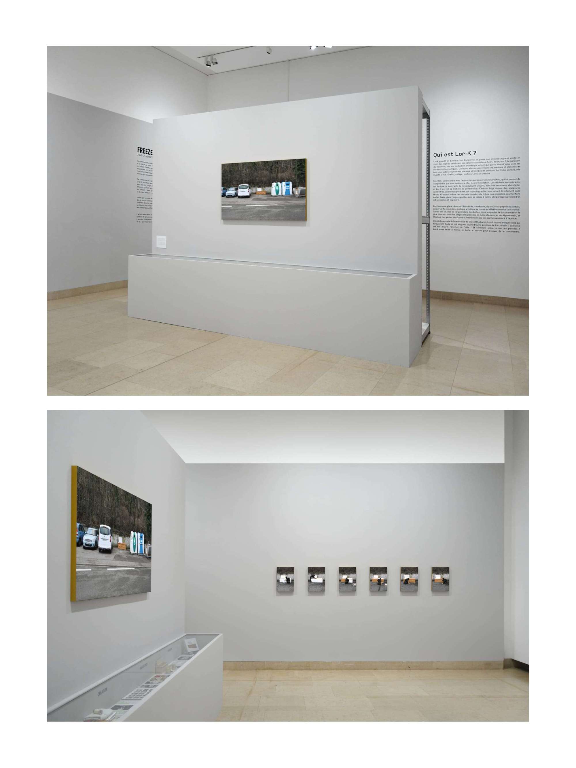 Invitée par le musée des Beaux-arts à participer aux RUN en réalisant une oeuvre pour la collection ADN, Lor-K a tout d’abord réalisé une sculpture éphémère dans les rues nancéiennes, puis, comme à son habitude, poussé la réflexion plus loin et fait Œuvre. Ainsi, elle a conçu une installation qui se réincarne en dispositif d’exposition, puis en pièce de la collection permanente.