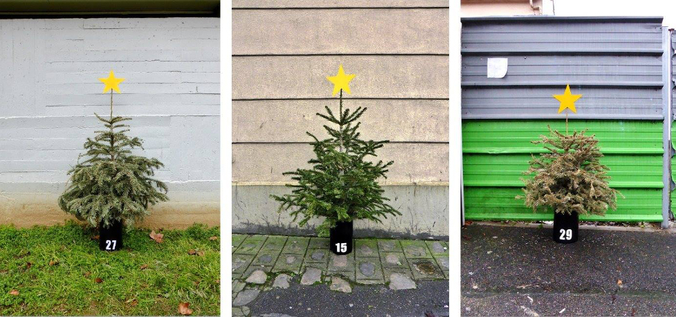 Tous les hivers, décembre marque le début d'une gloire au sapin. Élément décoratif incontournable des fêtes de fin d’année, ils entrent, troncs sciés, dans tous nos lieux de vies. Mis en scène, comme garde-fou des présents familiaux, une place de choix leur est dédié dans nos foyers. Noël passé, un drôle de spectacle apparaît sur nos trottoirs. Encore frais, épines bien accrochées, ces arbres sont jetés sur la voie publique. Déshabillés de leurs habits de lumière, ils se transforment soudainement en déchets sauvages. Quotidiennement, des quantités phénoménales de sapins errent alors dans nos rues. Pendant un mois, cette flore malmenée est transformée en un calendrier de l’après inédit où le 31 janvier se présente comme un résultat, peu surprenant, de nos comportements face au vivant.