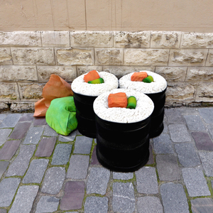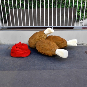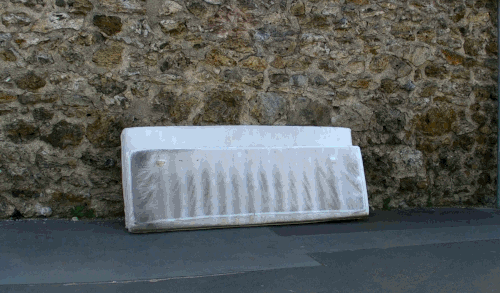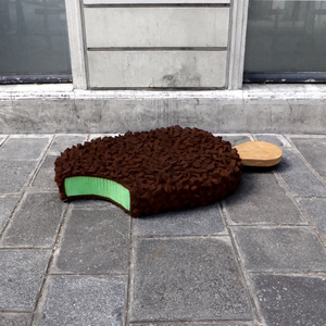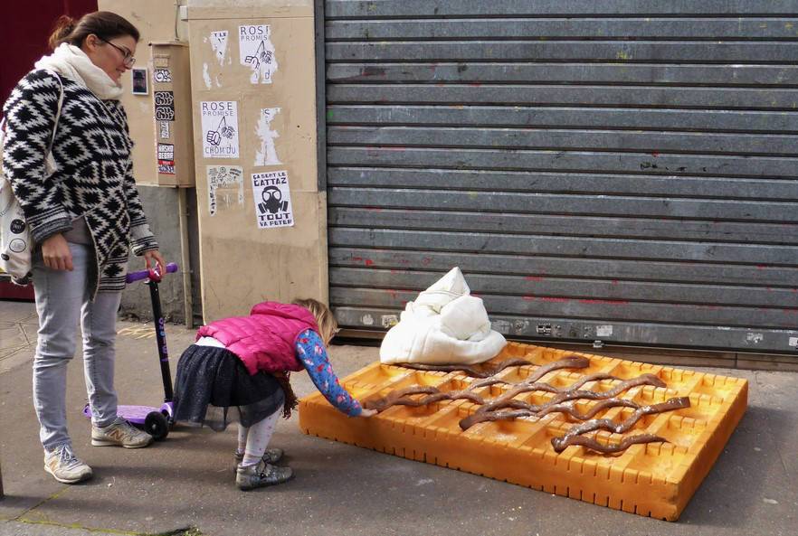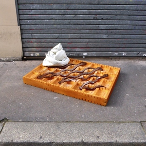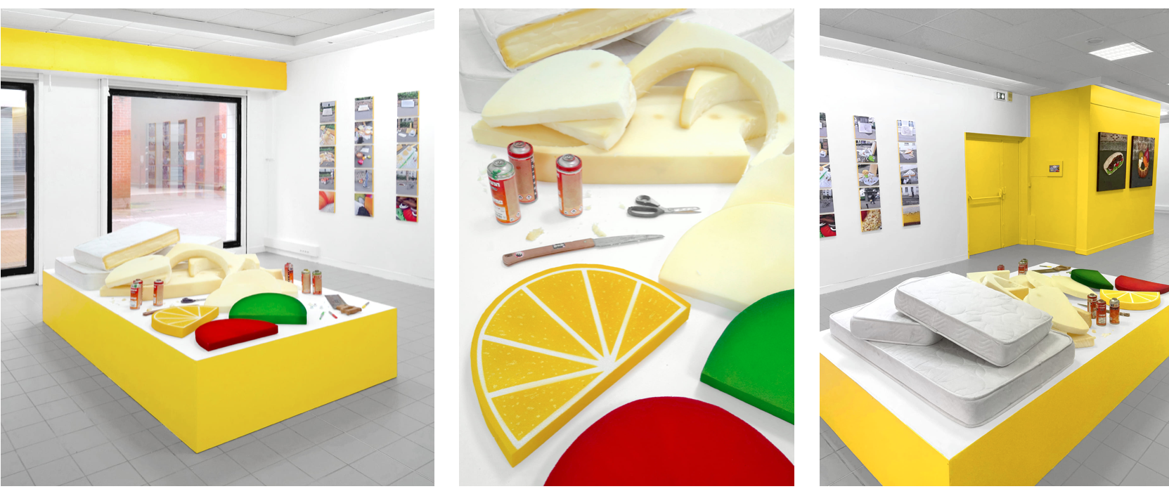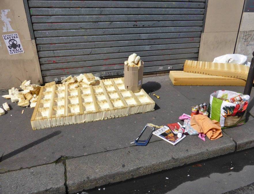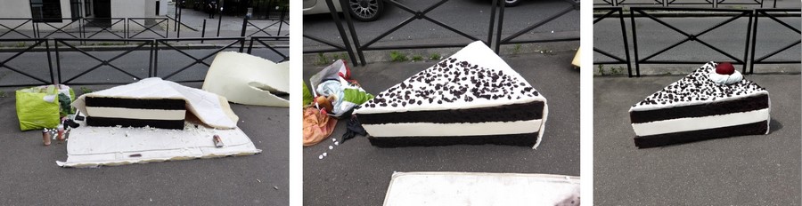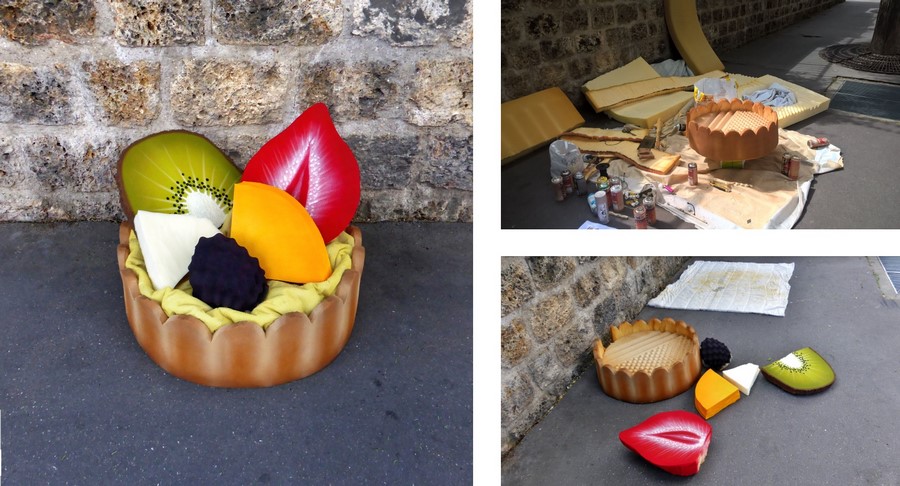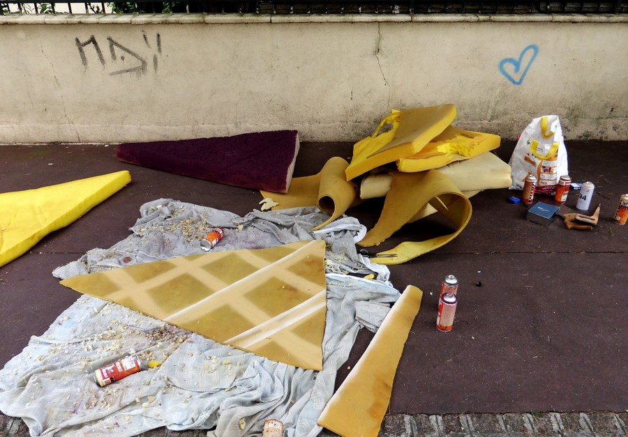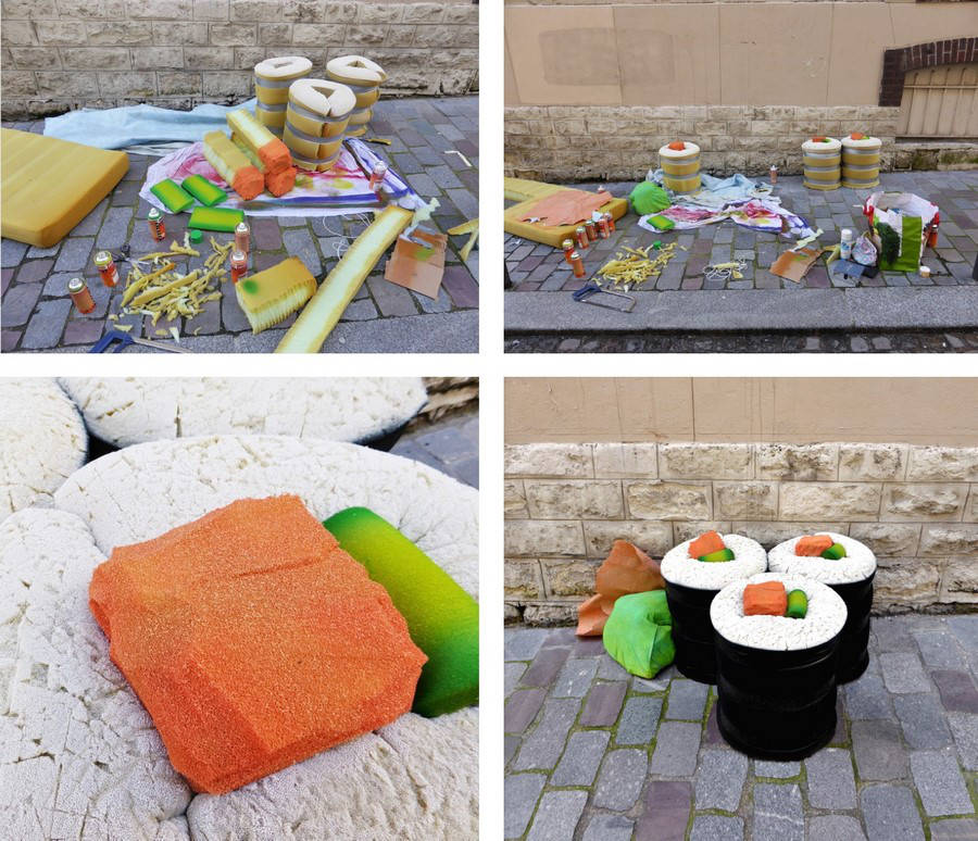 Trouvés dans la rue, les matelas sont transformés directement sur le trottoir en appétissantes sculptures. Scies, cutters, scotchs et bombes de peinture deviennent les ustensiles d’une cuisine insolite. Après préparation, pâte, crème, garniture et coulis, surgissent de la mousse ! Symbole d’une restauration rapide présente en masse dans nos villes, les plats choisis sont universels et facilement identifiables. À l’image de notre industrie alimentaire globalisée, pizza, panini, kebab, et autres recettes sont concoctées avec minutie pour offrir un rendu bluffant de réalisme. Surdimensionnés et colorés, ces mets d’un nouveau goût attirent alors tous les regards. Abandonnés dans le paysage urbain, les matelas, auparavant repoussant, deviennent soudainement alléchants. Page à page, le livre dévoile tous les secrets de fabrication du projet.