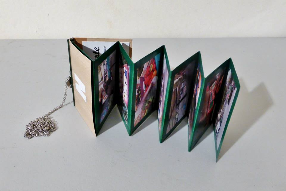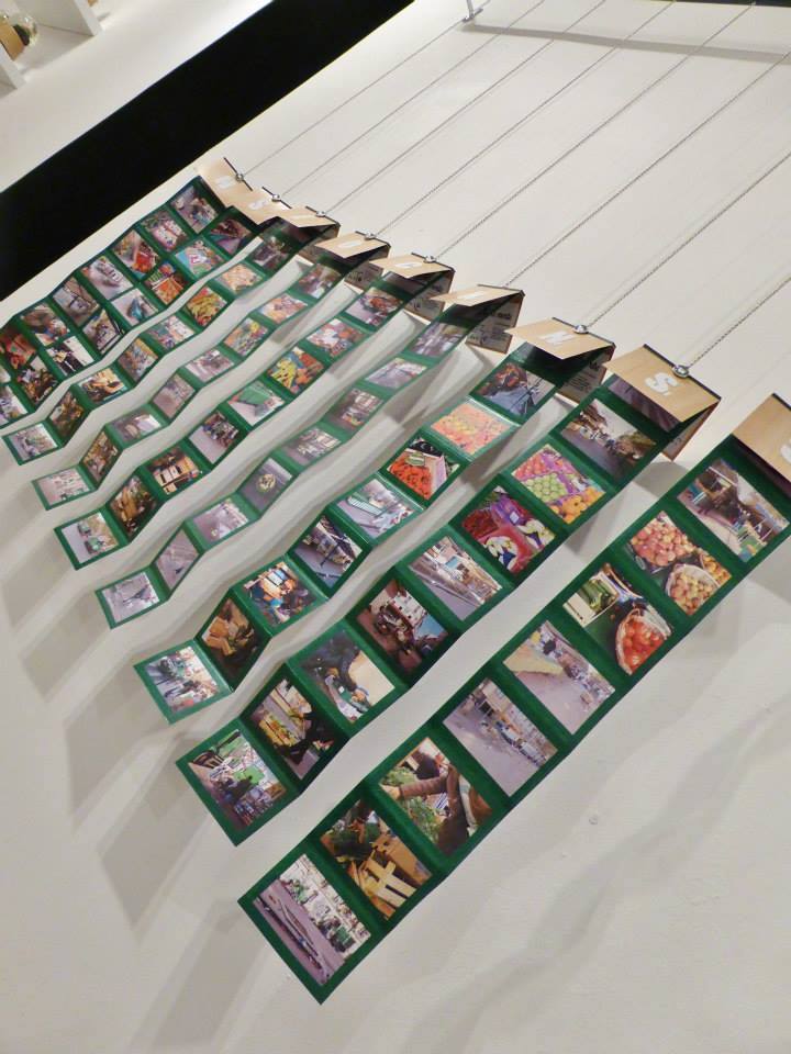 Les Déplitemps sont également des sculptures manipulables mais qui cette fois ci utilisent les techniques de l'édition. Montées en dépliant chaque série photographique s'offre alors à la manipulation du spectateur. Reprenant toutes les étapes des interventions, les Déplitemps permettent de découvrir l'ensemble du processus de création mis en place pour le projet NATURE MORTE. De l'installation du marché, à la vente des aliments ou encore du rangement au nettoyage, en passant par la pose des créations à leur disparition, chaque action se trouve mis en valeur au coeur des Déplitemps. En exemplaire unique et proposé sur tringle le spectateur est amené à toucher les pièces pour en découvrir le contenu. |
