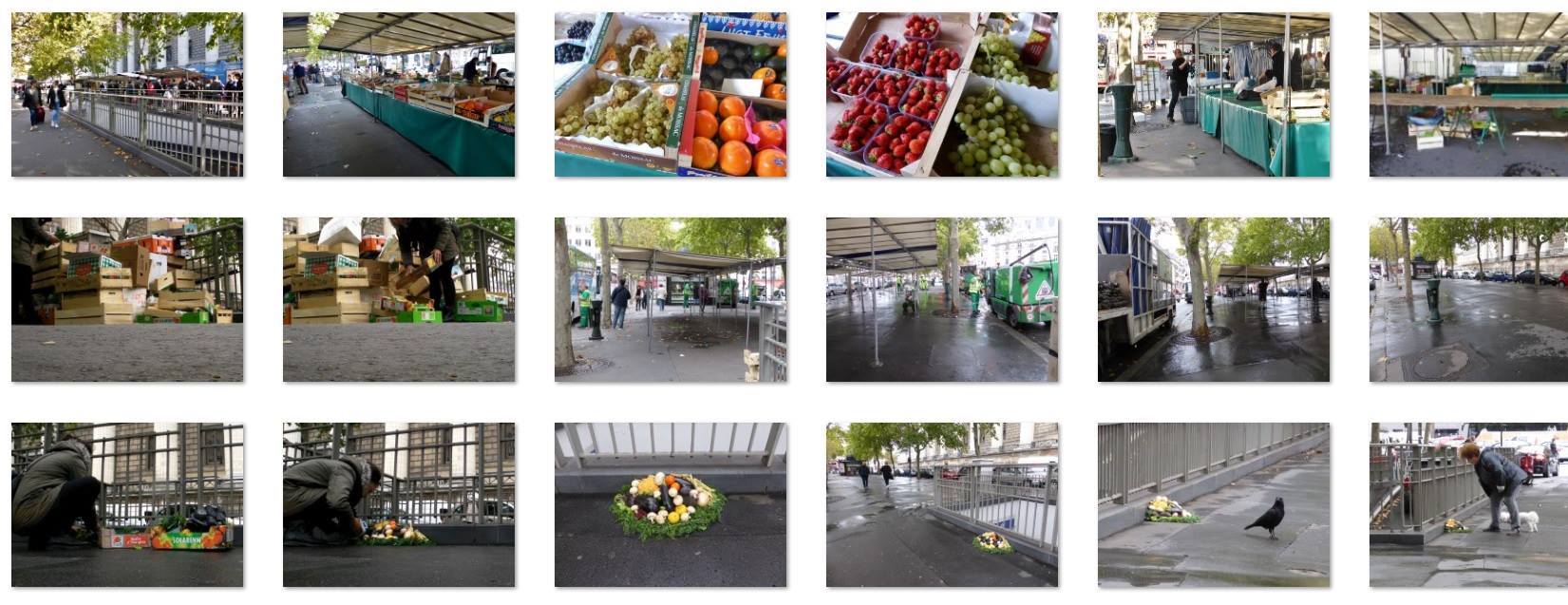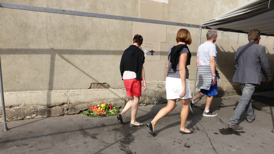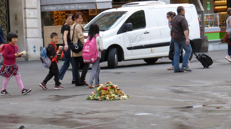 Les marchés alimentaires extérieurs sont des événements fascinants. Urbains, prémédités, réguliers et éphémères, ils prennent place dans de nombreuses villes du monde. Populaires et pratiques, les marchés transforment provisoirement nos espaces publics en zone marchande. En quelques heures, les lieux mutent avec une organisation sans failles, ou presque. Installation, vente, rangement, nettoyage, les étapes s'enchaînent et laissent percevoir un fait troublant. Chaque fin de marché trouve son lot de déchets comestibles. Avec une moyenne de deux kilos d'aliments jetés par stand, le sol se trouve vite jonché de fruits et légumes en tout genre. En moins d'une heure sur nos trottoirs, ils sont ramassés par les éboueurs pour finir à la benne. Peu sont ceux qui accordent attention à ces détritus luxueux.