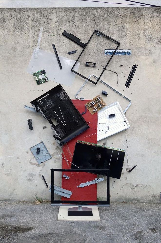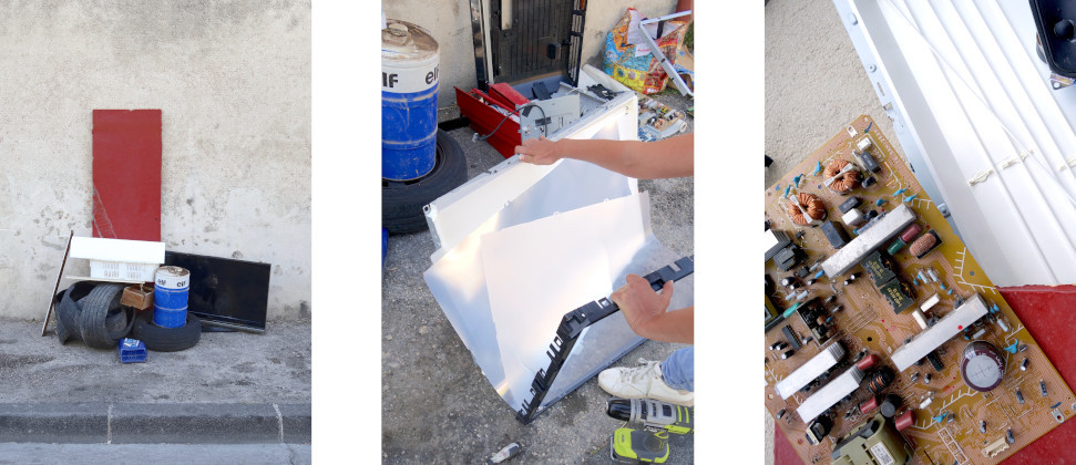 Les appareils électroménagers sont omniprésents dans nos vies citadines. Pour optimiser les espaces, une place de choix leur est prédestinée dans tout lieu de vie. Tombés dans le banal, ils attirent peu l’attention si ce n’est pour leurs aspects fonctionnels. Concentrés technologiques à l'enveloppe hermétique, leurs consistances nous échappent bien souvent. Généralement scellés par des pas de vis spéciaux, il est rarissime d'en découvrir l’intérieur. Une fois sur le bitume, ils sont considérés comme morts, défectueux, obsolètes. Abandonnés dans la rue, ils deviennent des encombrants indésirables. Seules quelques personnes les convoitent pour la revente de leurs matières premières. Objets à l’allure froide et minimale, les appareils électroménagers sont en réalité une somme précise d’éléments minutieusement organisés. Étalée sur le mur, une télévision démembrée devient une composition picturale abstraite pleine de sensibilité. Une fois déboîtée, désossée, dévissée, l'inventaire méticuleux dévoile une autopsie sensible où l’objet laisse échapper son âme.